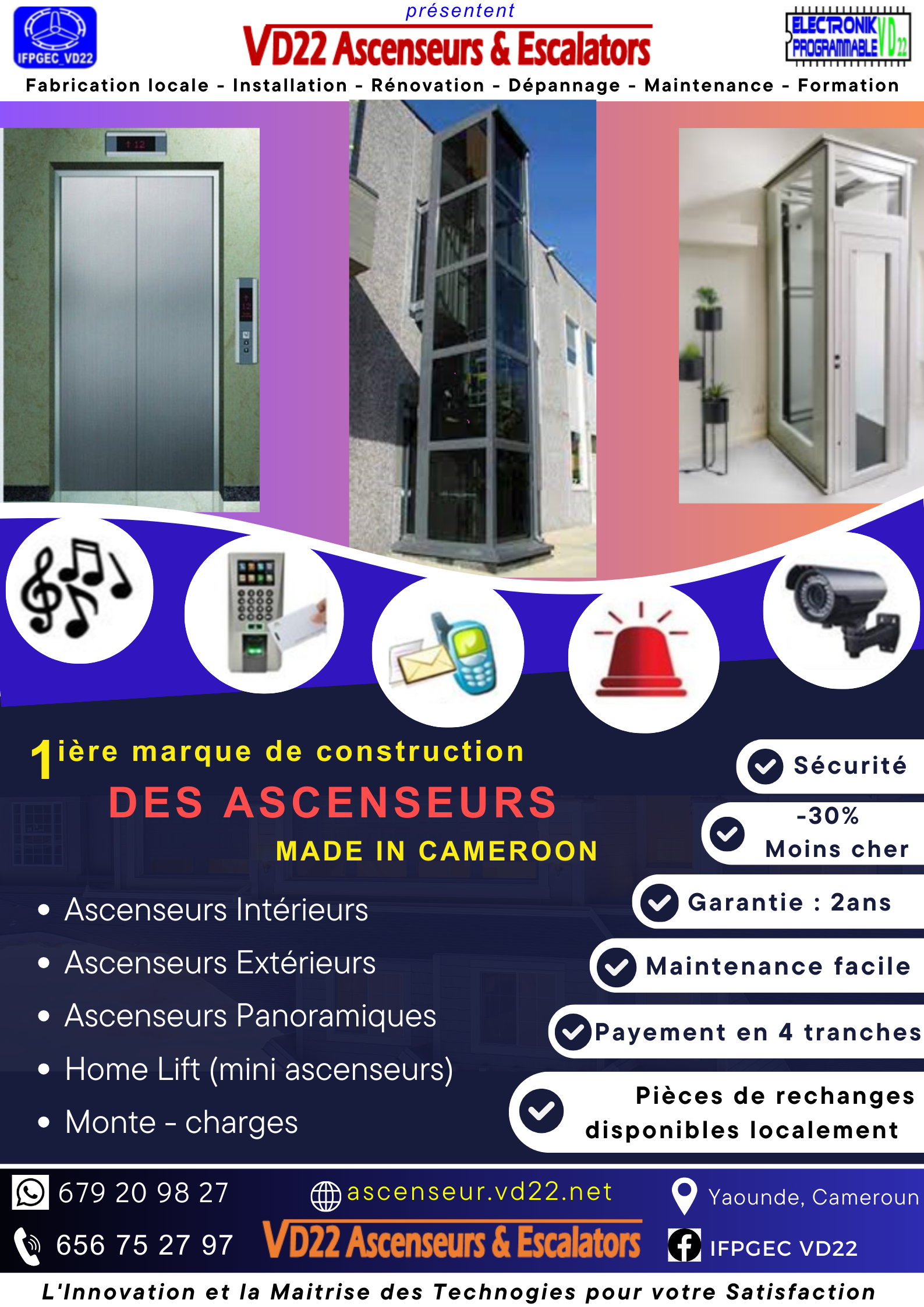 Bien sur, nous sommes les 1er Constructeur des Ascenseurs Made In Cameroun avec déjà plusieurs projets réalisé et beaucoup autres en cours de réalisation.